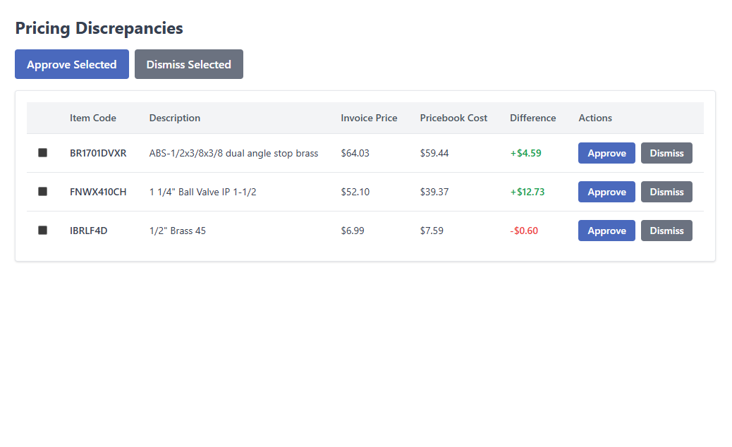 ✓ Bulk update Feature Allows for Live Pricebook Costs